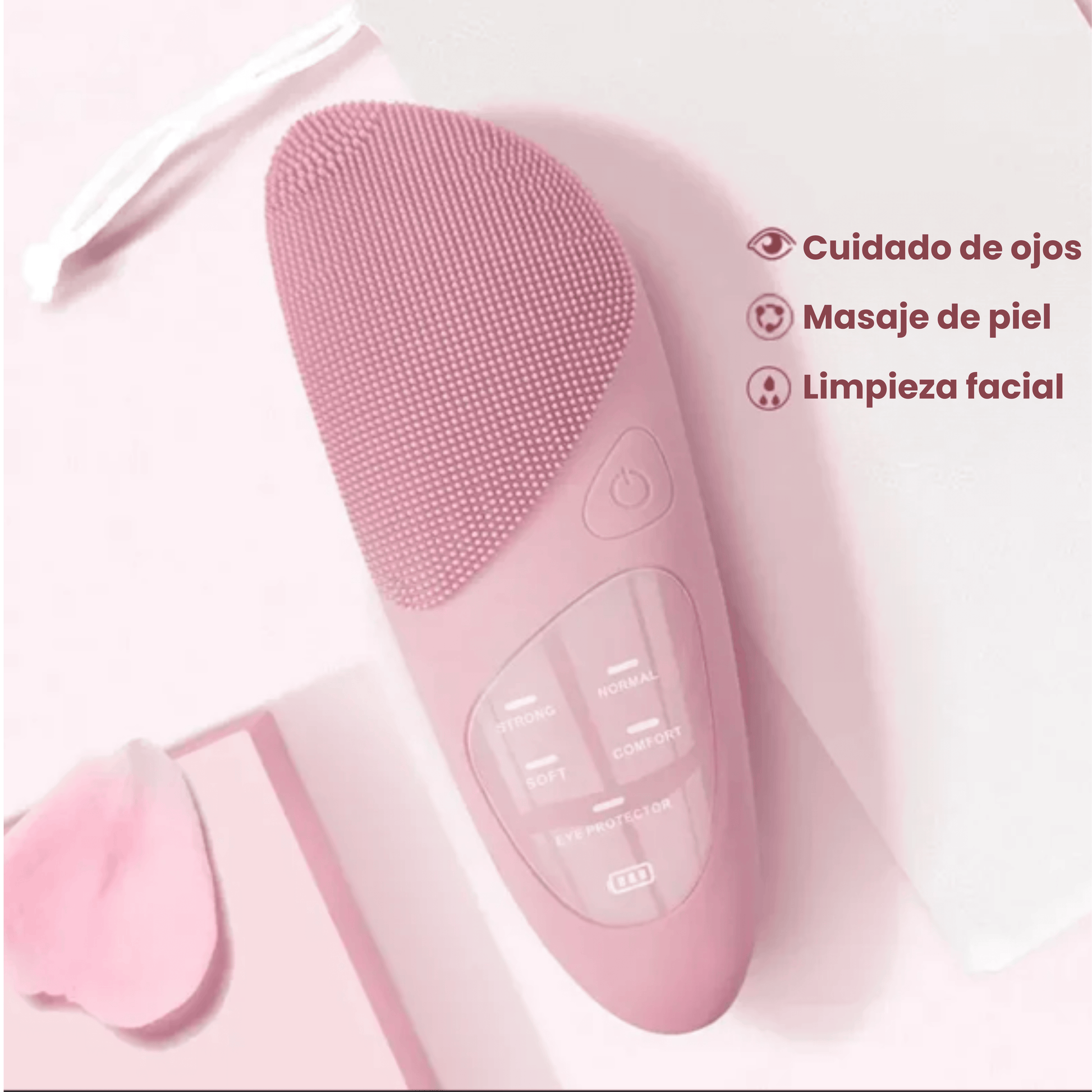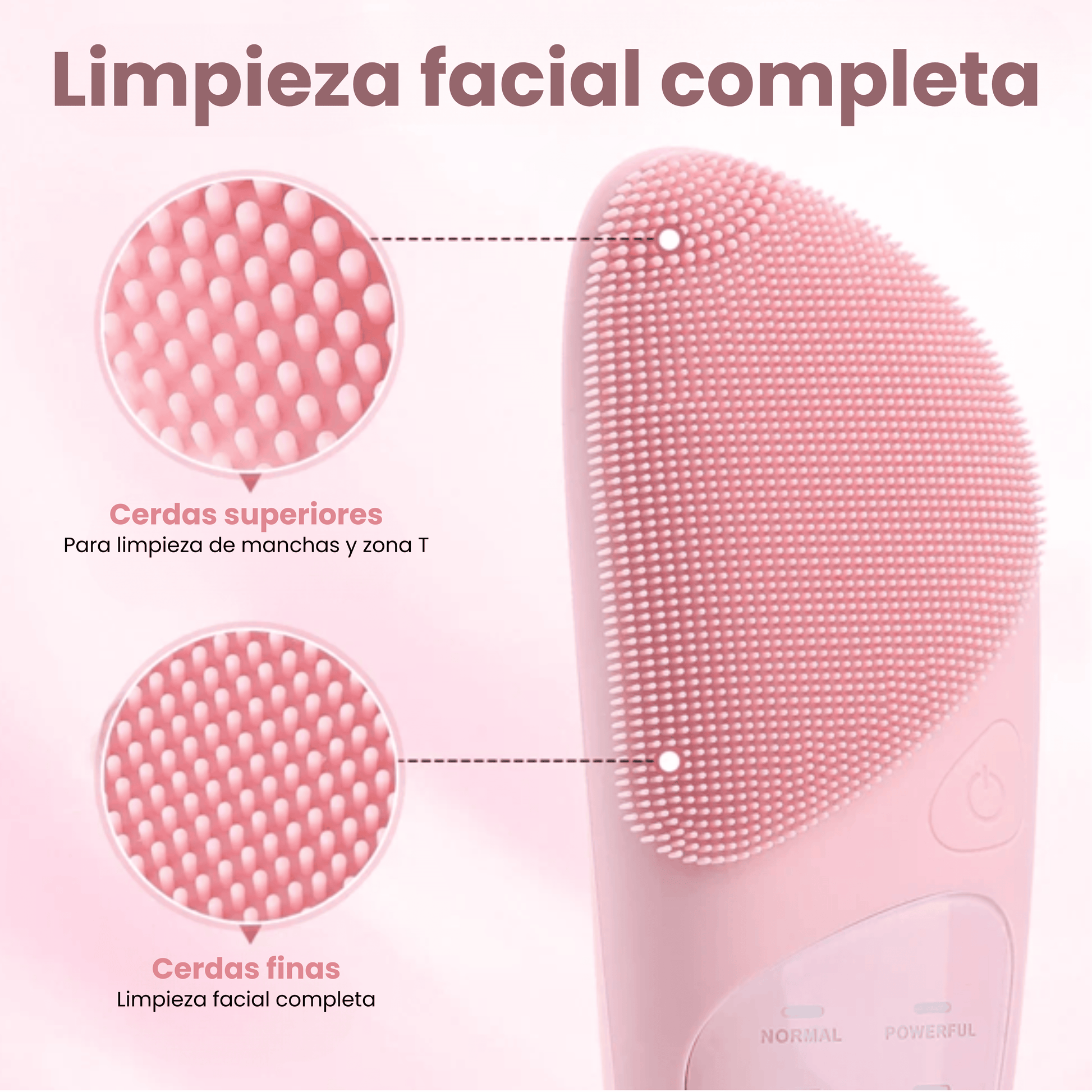 Este cepillo facial eléctrico transforma tu limpieza diaria en un cuidado profundo y efectivo desde casa. Sus vibraciones ayudan a remover impurezas, grasa y residuos atrapados en los poros, mientras las cerdas de silicona suave cuidan tu piel sin irritarla.